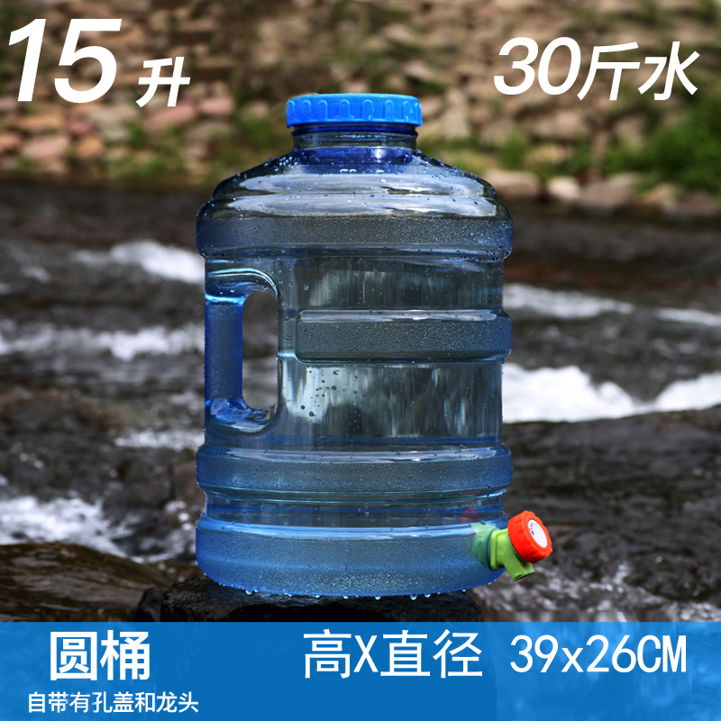 加厚15升圆桶户外PC纯净水桶车载带水龙头桶装水桶家用便携储水箱