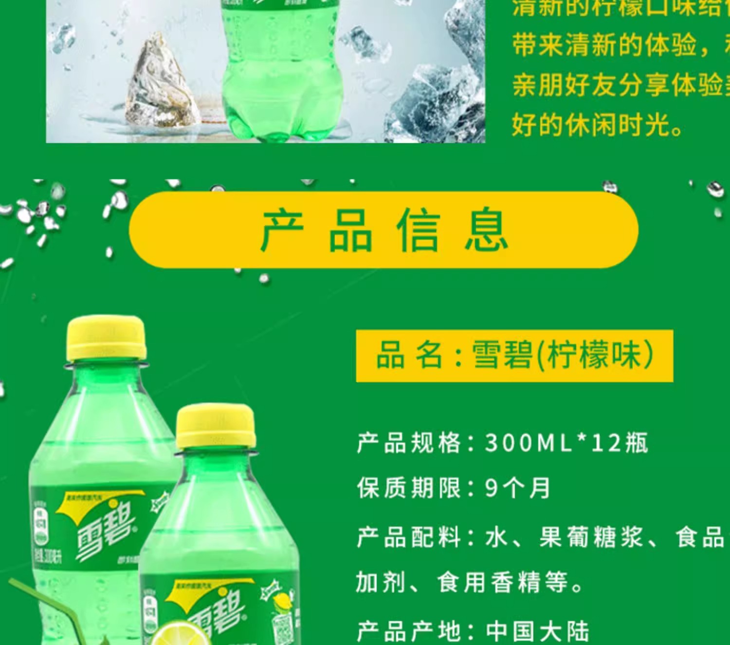 雪碧300ML*12瓶小瓶装mini装餐饮装饮料可乐碳酸饮料批发