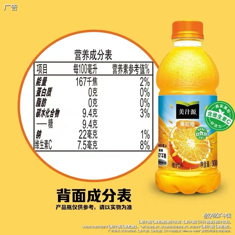 美汁源果粒橙300ML小瓶饮料可口美味果粒橙