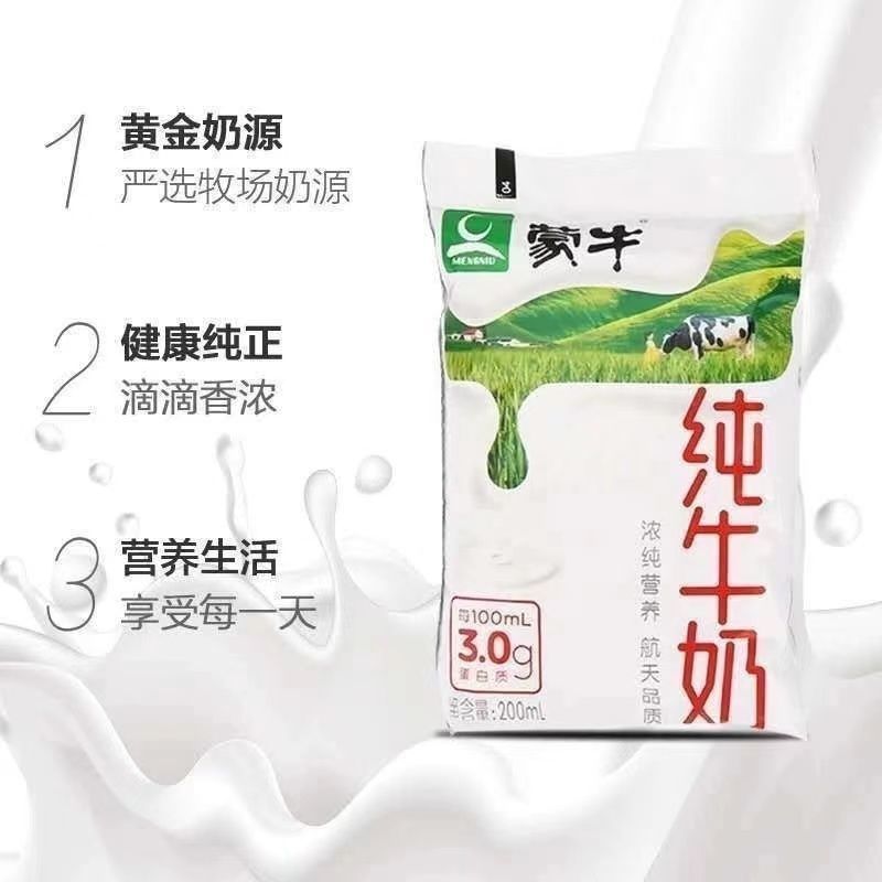 新日期蒙牛百利包纯牛奶200mL*16袋 全脂整箱早餐学240ML*16袋
