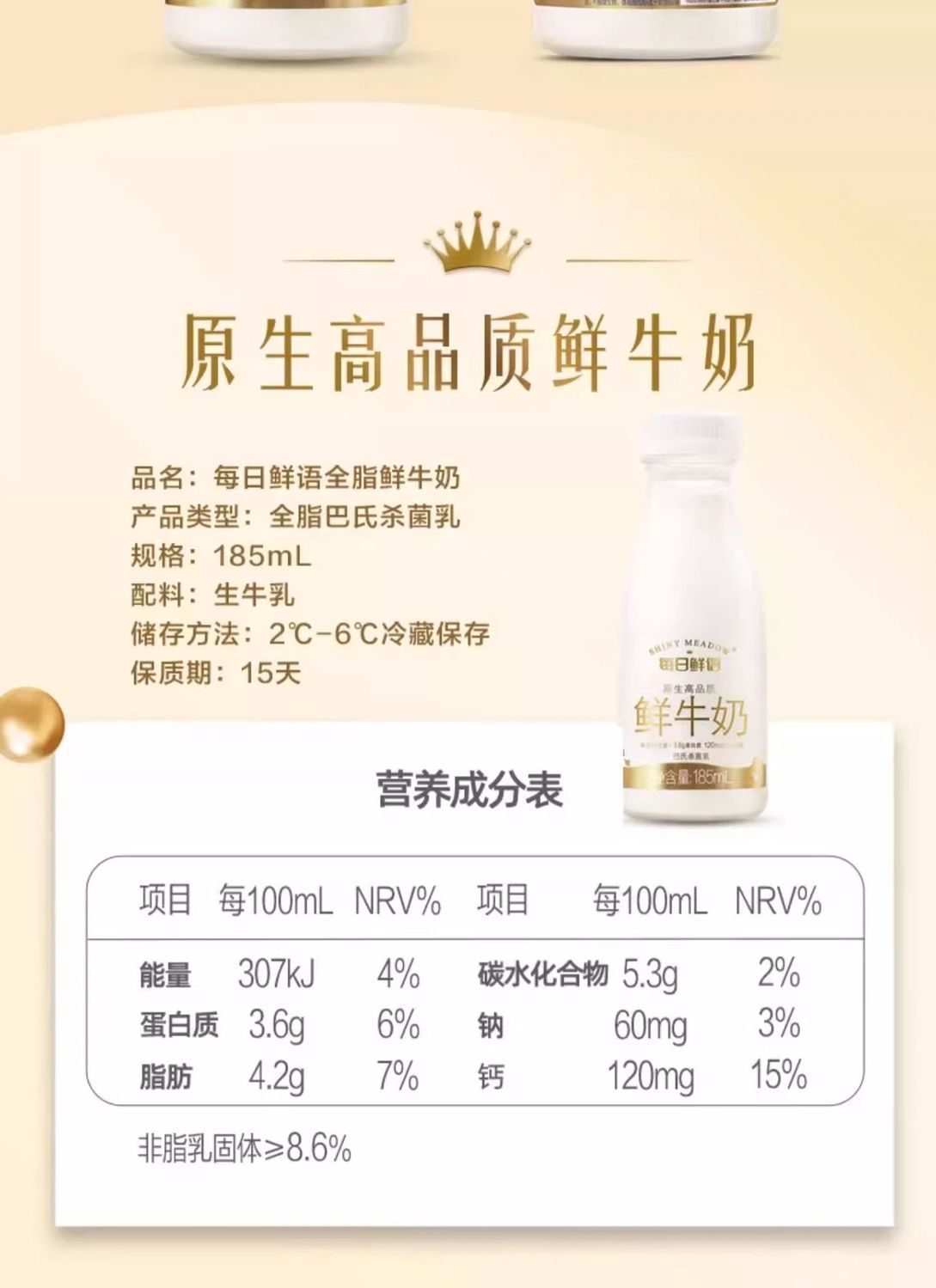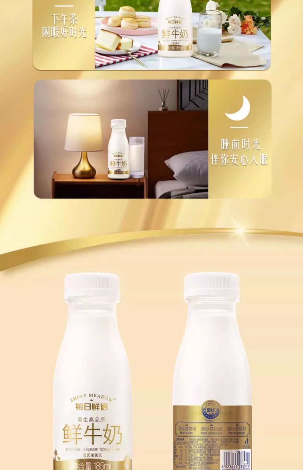 批发每日鲜语鲜牛奶185ml×8瓶儿童营养早餐纯牛奶全脂奶包邮