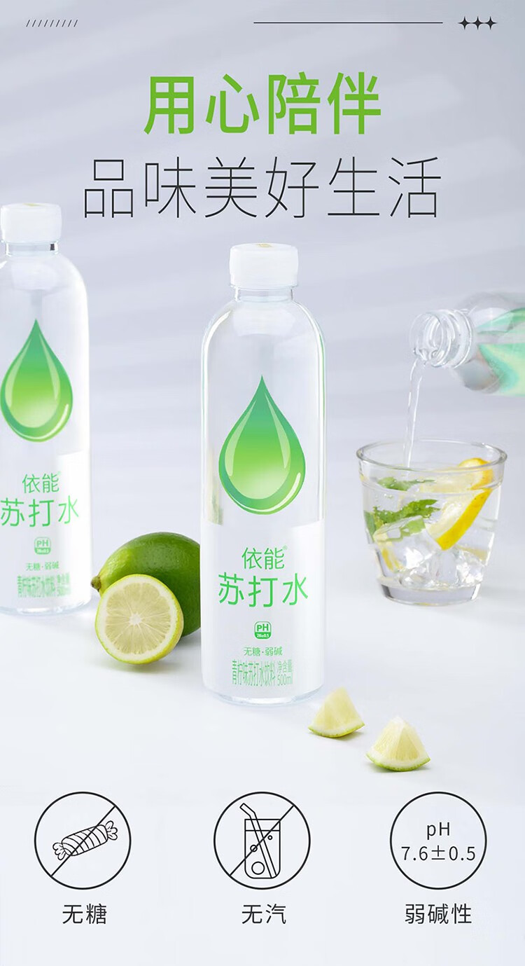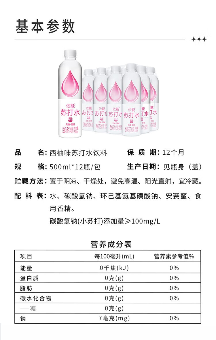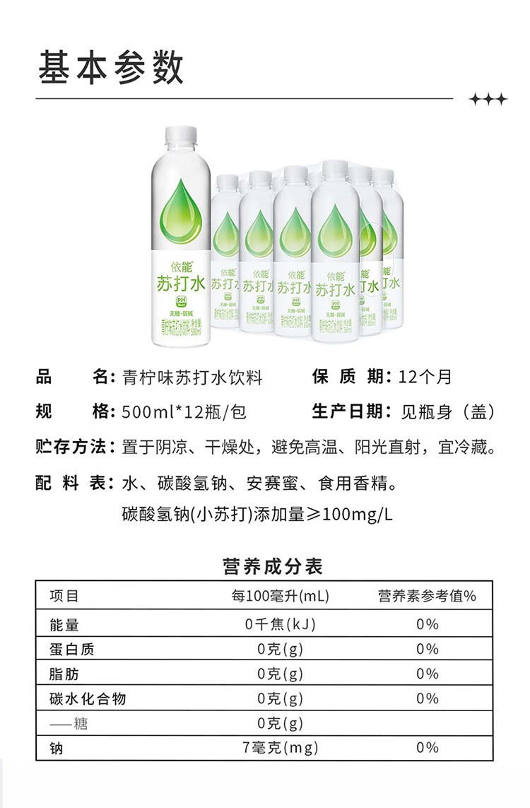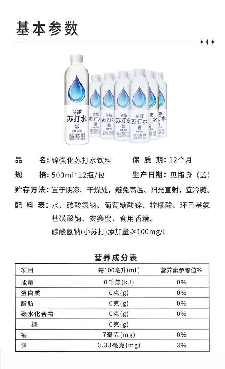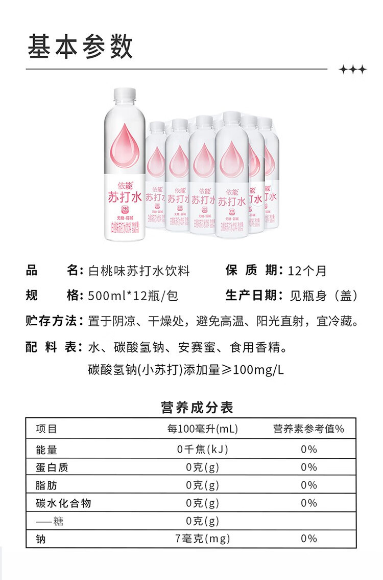 依能锌强化苏打水饮料 白桃味 无糖无汽弱碱 500ml*12瓶