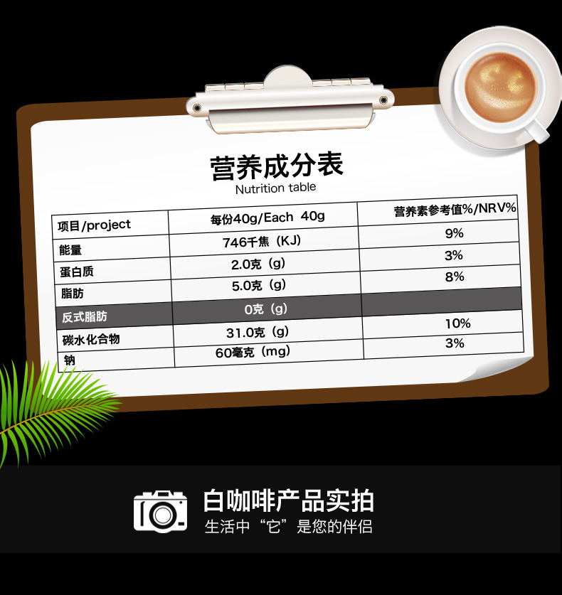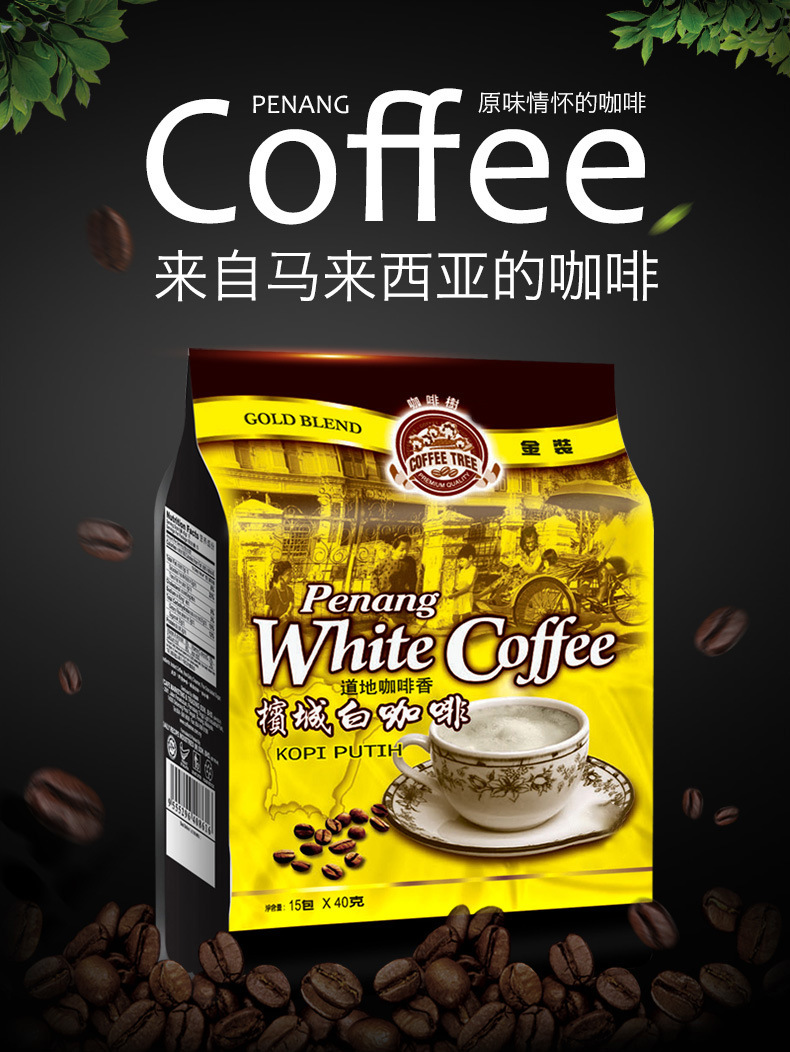 马来西亚进口槟城咖啡树白咖啡三合一速溶咖啡粉40g*15条600g装
