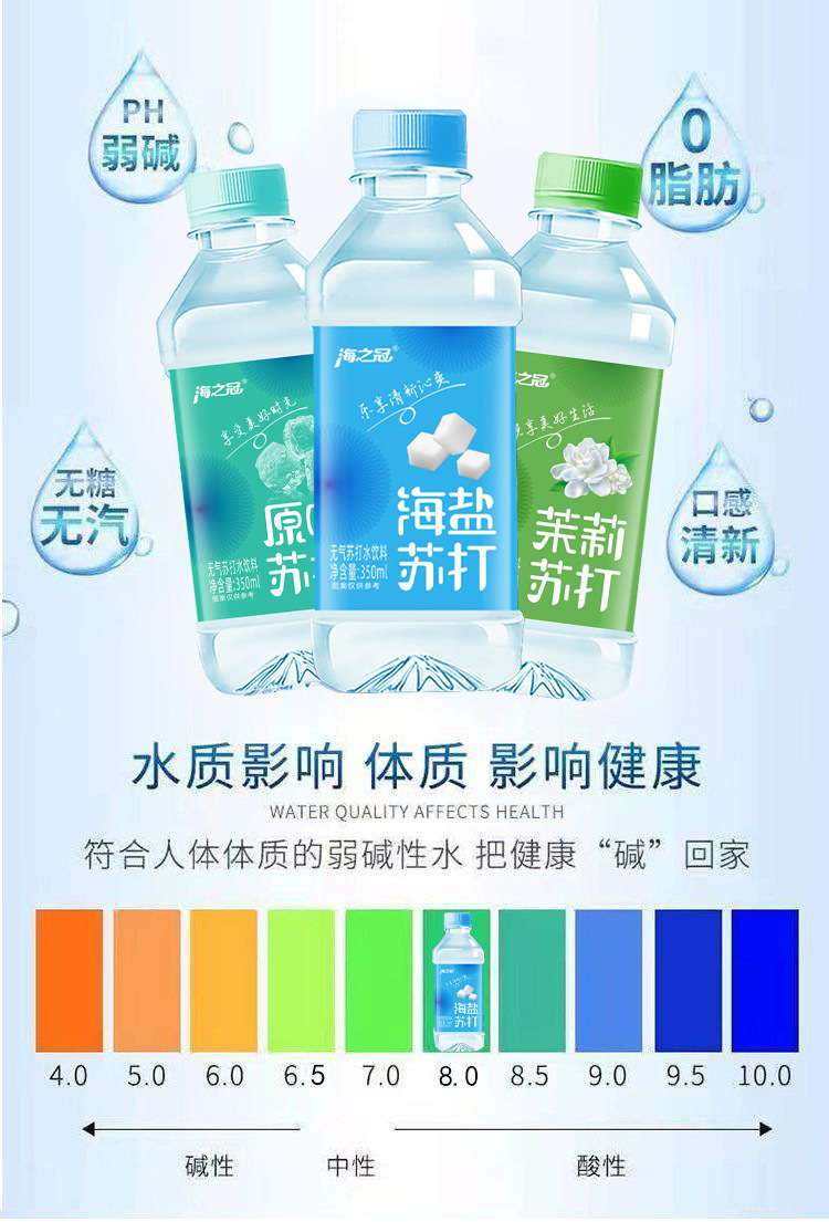 海之冠苏打水无糖无气碱性原味饮料0卡0脂350ml饮用水饮品