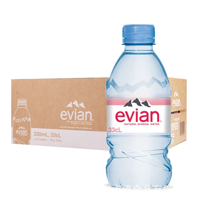 evian依云矿泉水330ml*24瓶天然弱碱性车载饮用水整箱法国进口