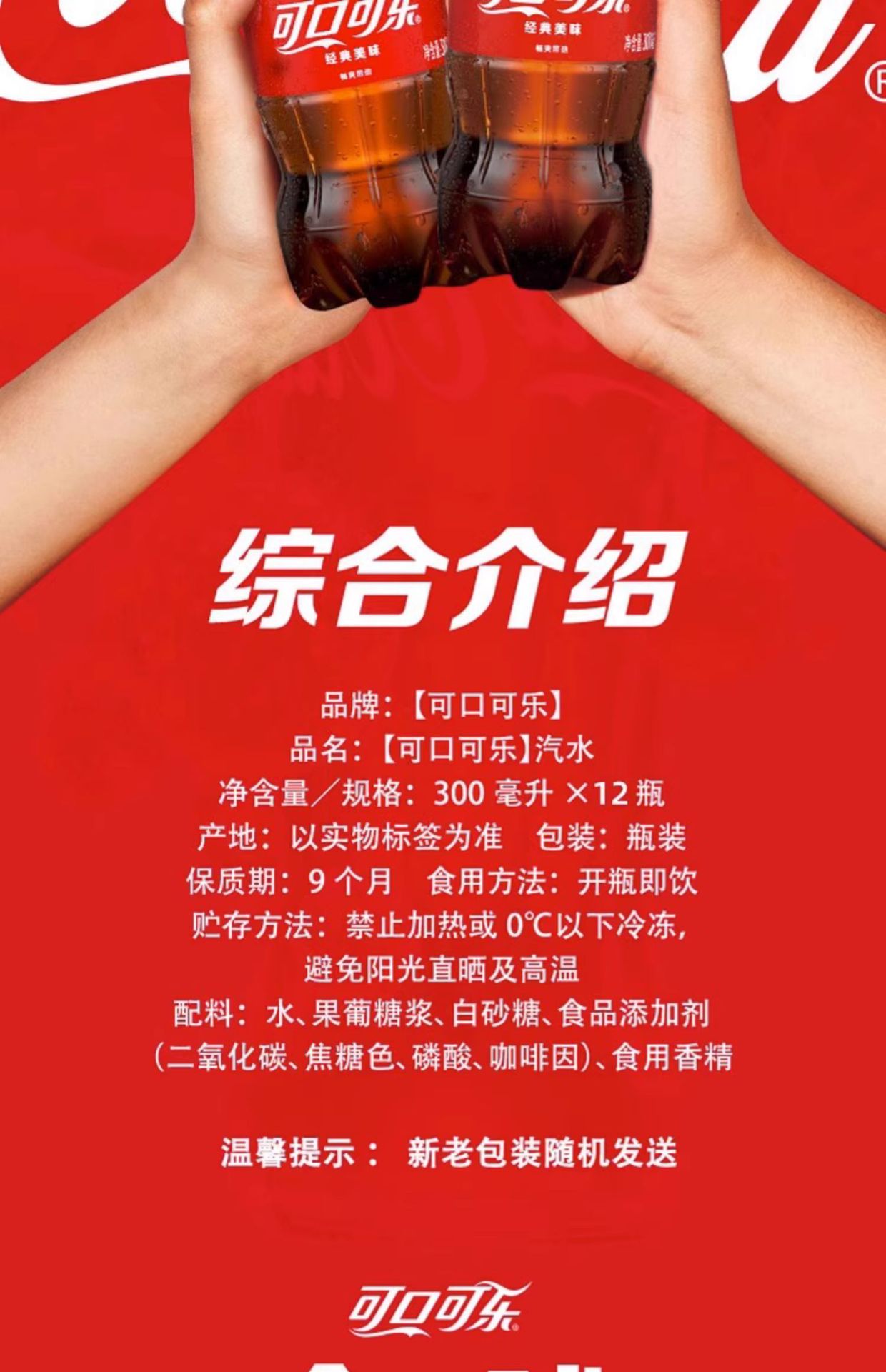 批发可口可乐汽水300ml*6瓶整箱Coca迷你小瓶装碳酸饮料饮品