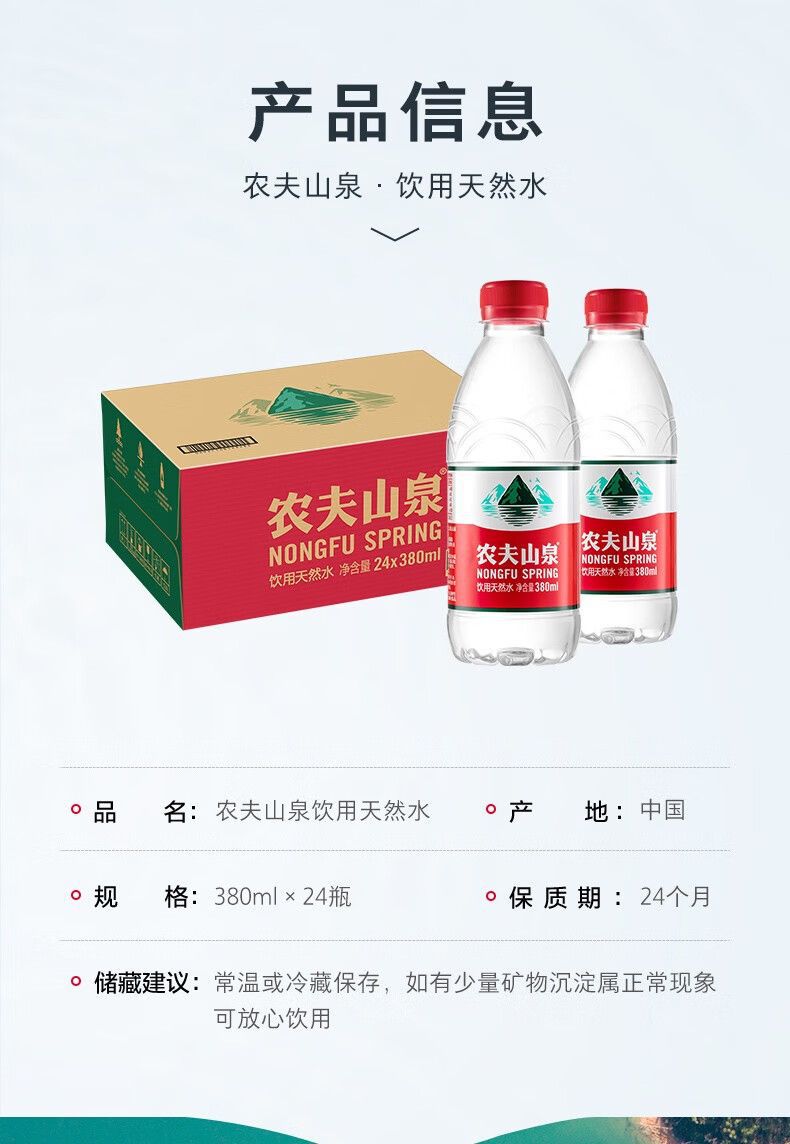 农夫山泉天然饮用水380ml小瓶会议酒店学生便携塑膜装