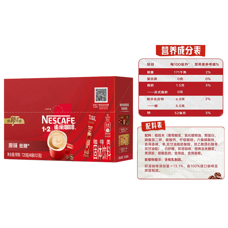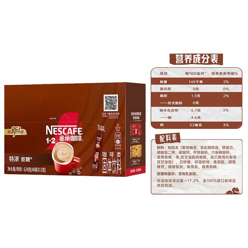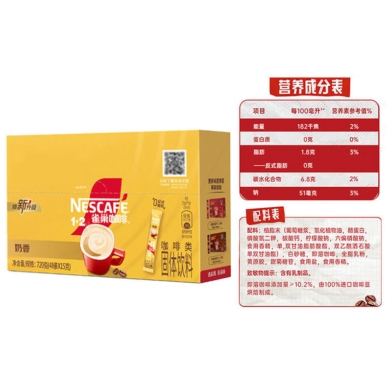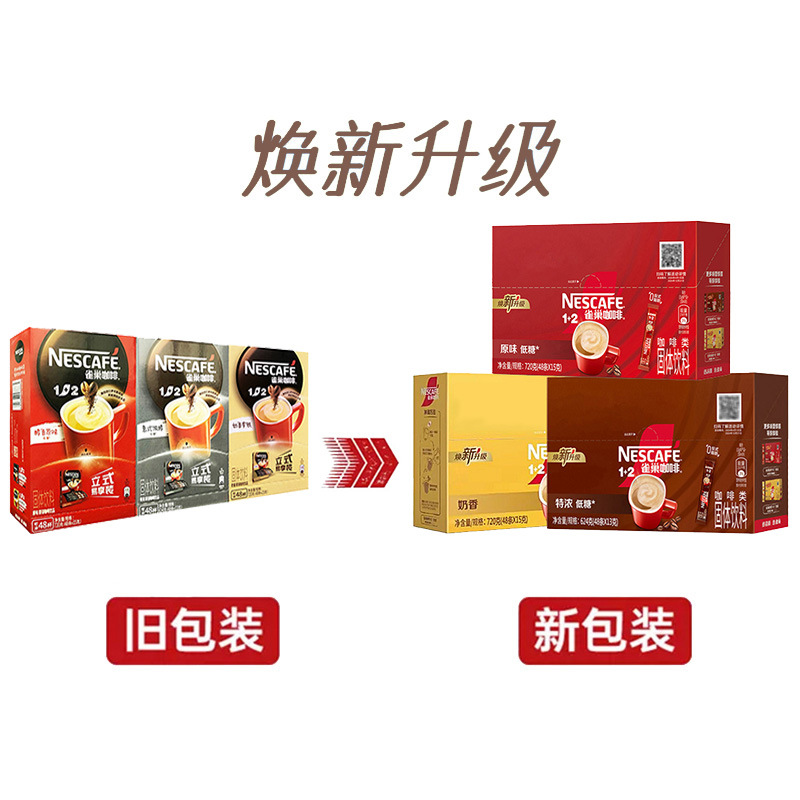 雀巢咖啡48条三合一速溶醇香原味意式浓醇奶香拿铁咖啡粉盒装